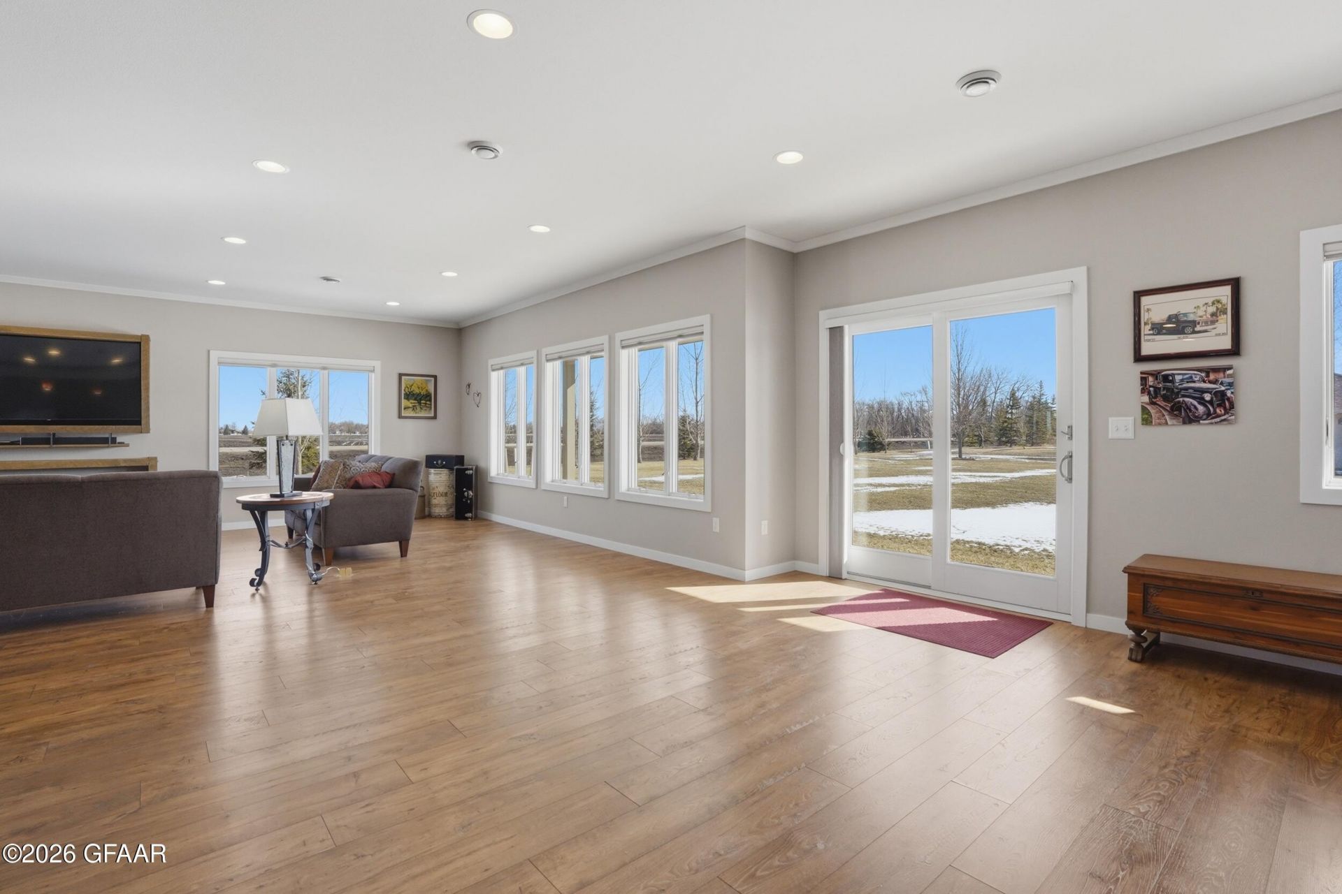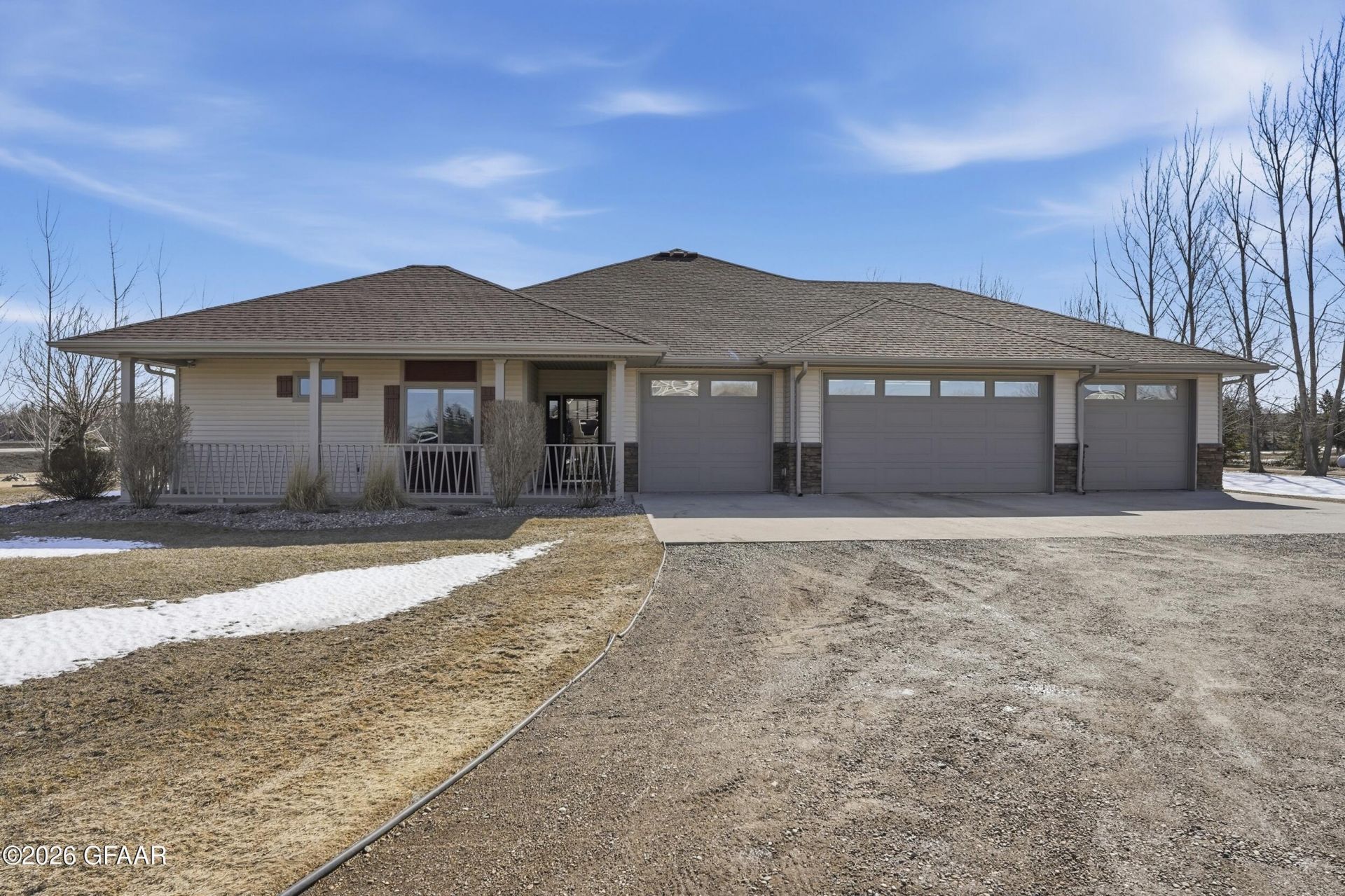 Welcome to 6201 Driftwood Dr, an exceptional custom-built slab-on-grade home set on 2.6 acres just south of Grand Forks in a highly desirable neighborhood.This thoughtfully designed home offers true single-level living with an open concept layout, heated floors throughout the home and garage, and an efficient geothermal system for year-round comfort and low operating costs. The spacious kitchen features a large pantry and flows seamlessly into the living and dining areas, creating an ideal space for both everyday living and entertaining.The home is filled with natural light thanks to high-quality Andersen windows and incredible east-facing backyard views, perfect for enjoying peaceful sunrises over the expansive property.The large primary suite provides a private retreat, while a functional mudroom helps keep everything organized. Car enthusiasts, hobbyists, or anyone needing extra space will appreciate the six total heated garage stalls.Outside, the property truly stands out. The beautifully landscaped yard, long driveway, and strong curb appeal create an impressive first impression, while the 2.6-acre lot provides space, privacy, and room to enjoy the outdoors.A rare opportunity to own a meticulously maintained property combining quality construction, efficiency, and acreage just minutes from Grand Forks.